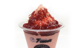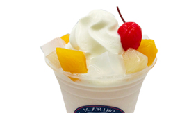 当社の看板商品。スポーツ観戦にぴったりな、コールドスイーツドリンクです。夏場の試合では1日に300杯以上の販売となる商品でお客様が手にしているだけで周りからも目を引く仕上がりとなっております。クラブ応援TV番組とのコラボレーション商品の展開やお取引様とのオリジナル商品も展開し、好評を博しました。